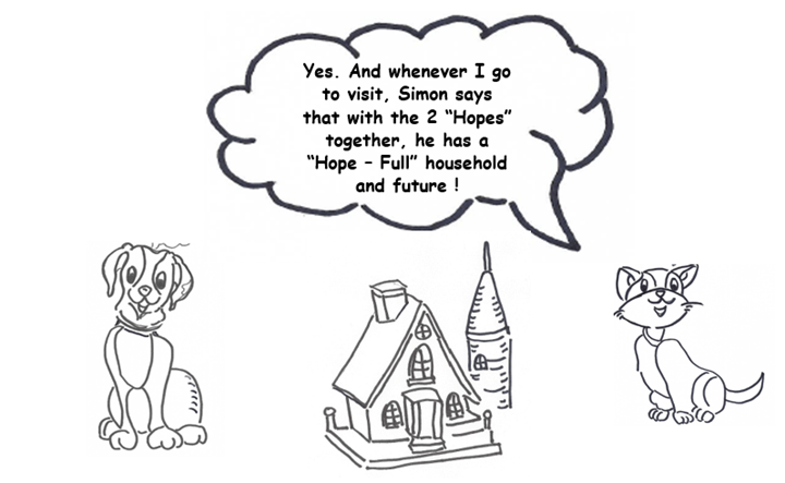 Our cartoon characters, Hope and Harry and Simon and Specs are at it again…creating a few puns to consider as they address the phrases and idioms in the English language that we often use.
