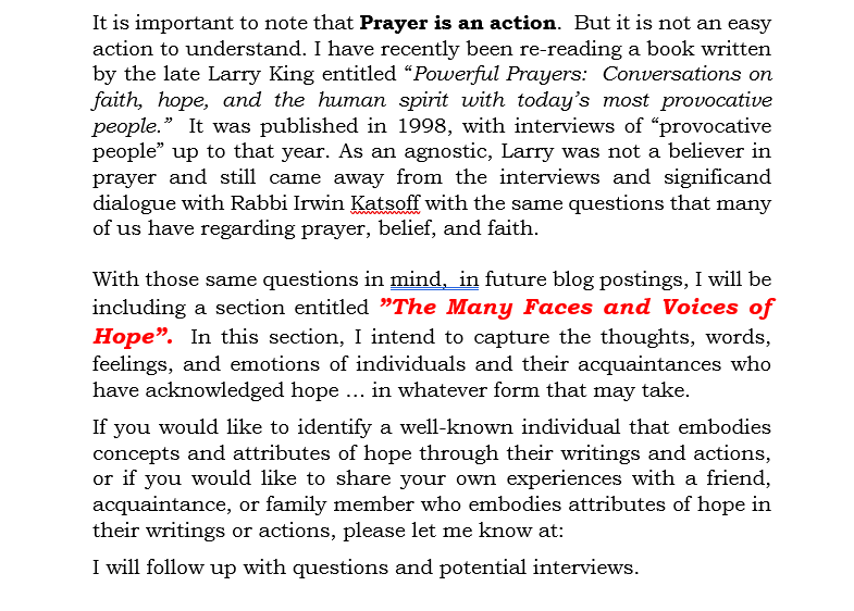 Gregory Charles Reynolds has been on a spiritual quest for most of his life. As a student at Hamline University in St. Paul, Minnesota, he studied religion, philosophy, and art. He received a Bachelor of Arts degree from Hamline in 1971 and has a Master’s Degree in Business Administration from the University of Minnesota. After a rewarding 32-year career working in the Finance and Education and Training organizations within 3M Company, he retired in 2007. In 2016, he came out of retirement to work for a non-profit organization and subsequently "retired" a second time in 2020. Gregory is no stranger to adversity and the struggle we each face to not only survive, but attempt to thrive under adverse conditions and circumstances. Recovering from a heart attack in 2008, he found renewed strength, support and belief in the power of an awesome God. He could not have done this alone, and is extremely grateful to family members and friends who guided him through a difficult time. Having witnessed the effects of illnesses and diseases like cancer on close friends and family members, he is constantly reminded that adversity impacts not only the patient or victim, but also those who care about the health and wellbeing of others. Believing that adversity in all our lives is not optional, Greg has continued his quest to find meaning and purpose in life and has established this website and blog to create hope in the future for all of us.