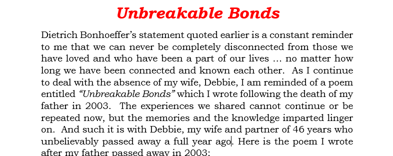 1. Always inspiring, thoughtful, and hopeful.  We are blessed to have you as a friend.  We miss Deb, she was special.  She would be proud of your work