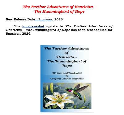 - The “Hope and Humor” section now contains the first installment of “The Adventures of Henrietta – The Hummingbird of Hope” and includes Chapters 1 -3 which can be downloaded for future viewing and printed to share with children in your families.