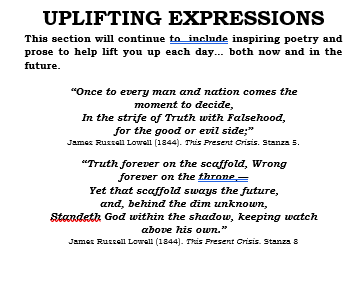 - Uplifting Expressions. This section will include inspiring poetry and prose to help lift you up each day… both now and in the future.